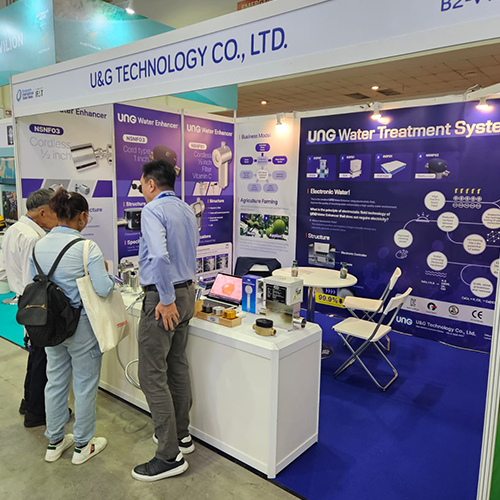 As a result of applying it to industrial water quality improvement equipment and to various overseas facilities such as Singapore, the Philippines, and Argentina as well as Republic of Korea, it was confirmed that the water quality improvement effect was proven, such as algae removal as well as rust, scale, and slime elimination. Subsequently, we applied this water treatment technology to household products, leading to the development of UNG Water Technology.